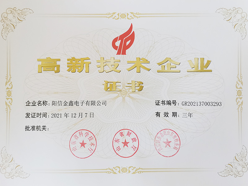 高新技术企业证书
