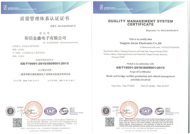 质量管理体系认证证书